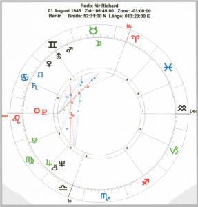 b- siehe ausführliche Deutung der leeren Hälften in meinem Buch, S. 49/50 und S. 52/53, sowie weitere Ausführungen zu Richards Horoskop