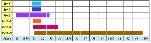 Das Frankreich von Napoleon III. stellt 300.000 Soldaten für den Krimkrieg (1854 – 1855) auf. Von ihnen sollte jeder Dritte sein Leben in jenem Krieg verlieren 5). Erst im März 1854, also nach Ende der UR-KJ-HAM, treten Frankreich und England als 3. und 4. Partei in diesen Krieg ein. Deshalb ist er hier nur am Rand erwähnt. Der Krimkrieg wurde also hauptsächlich unter der PL-KJ-HAM ausgetragen, aber während der UR-KJ-HAM vorbereitet. (Parallelen zu 2022: damals in den 1850er Jahren, nach Ende der UR-KJ-HAM, war es der Konflikt in der Krim, jetzt 2022 der Konflikt in der Ukraine. Gibt es Parallelen? Man sollte keine leichtfertigen Schlüsse ziehen, besonders nicht wenn es um Kriege geht. Um solche Muster zu erkennen, müsste man eine umfangreichere Studie machen.)