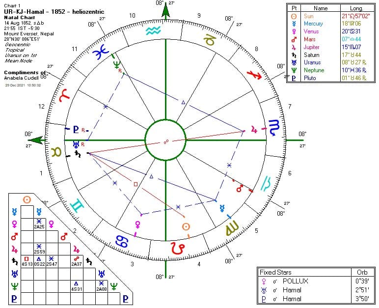 Abb.: Von April 1851 bis März 1854 war UR in KJ mit dem Fixstern Hamal.