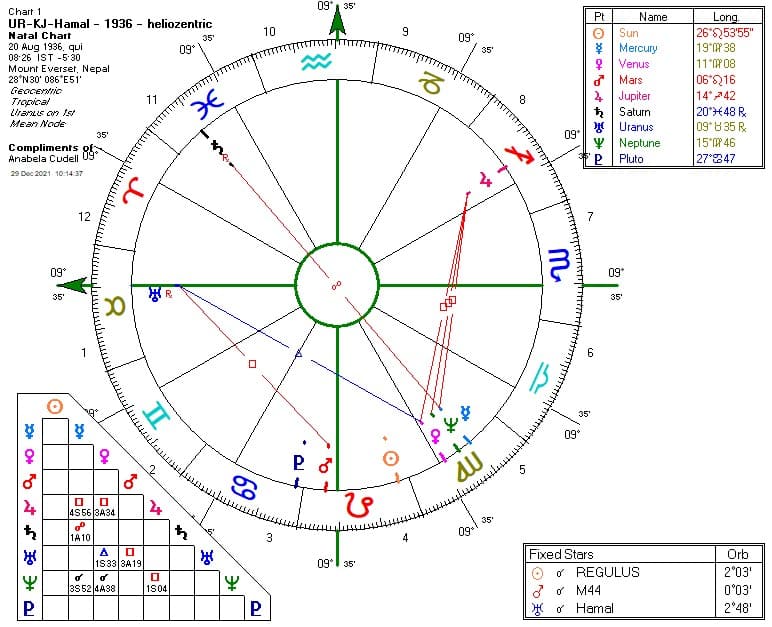 Abb.: Von April 1935 bis März 1938 war UR in KJ mit dem Fixstern Hamal.