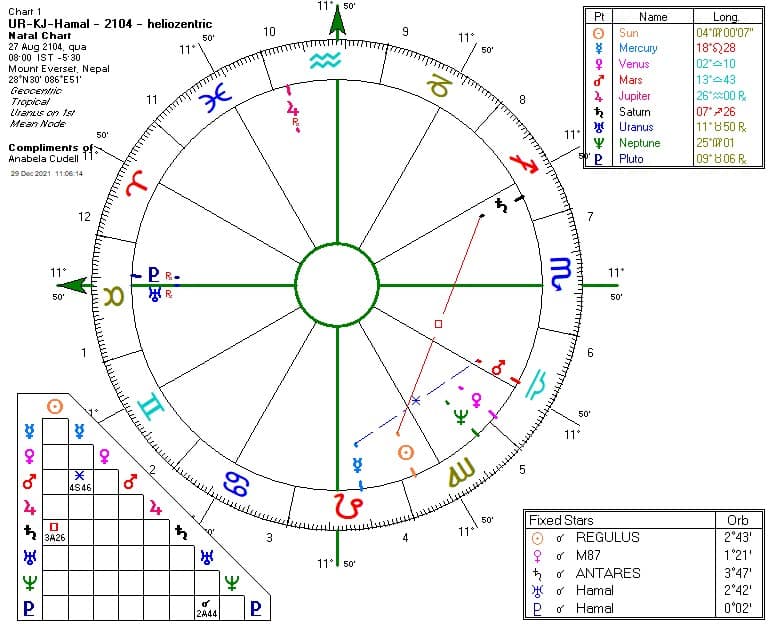 Abb.: UR in KJ mit dem Fixstern Hamal im Jahr 2104.