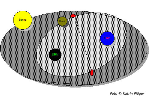 Ein Punkt, der in Verbindung mit der Erde steht, jedoch von Erdwarte aus betrachtet trotzdem seine Position verändert, ist der zweite Brennpunkt in der Ellipse, die der Mond um die Erde beschreibt. Den ersten Brennpunkt stellt die Erde selber dar. Dieser Punkt wird „schwarzer Mond“ oder Lilith genannt. Zutreffender wäre vielleicht die Bezeichnung „schwarze Erde“. Durch Funde von Dokumenten aus der Antike konnten Astrologen nachweisen, daß Lilith, der Schwarze Mond, bereits in der babylonischen und assyrischen Astrologie berechnet wurde[1].