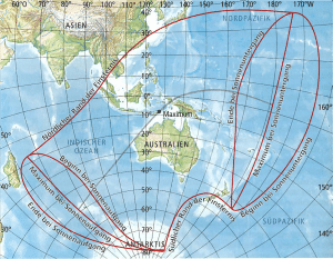 Abb. 2 Sichtbarkeitsgebiet der ringförmigen-totalen (hybriden) Sonnenfinsternis vom 20.04.2023,