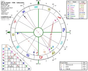 Die Intensität von Hamal zusammen mit seinem Drang, Dinge zu bewegen, paart sich mit dem Generationsplaneten Uranus, der erneuern möchte, etwas noch nie Dagewesenes schaffen will. Vielleicht verursacht gerade diese Verbindung autoritäre Formen der Politik die, „wie aus dem Nichts“, plötzlich und uranisch erscheinen.